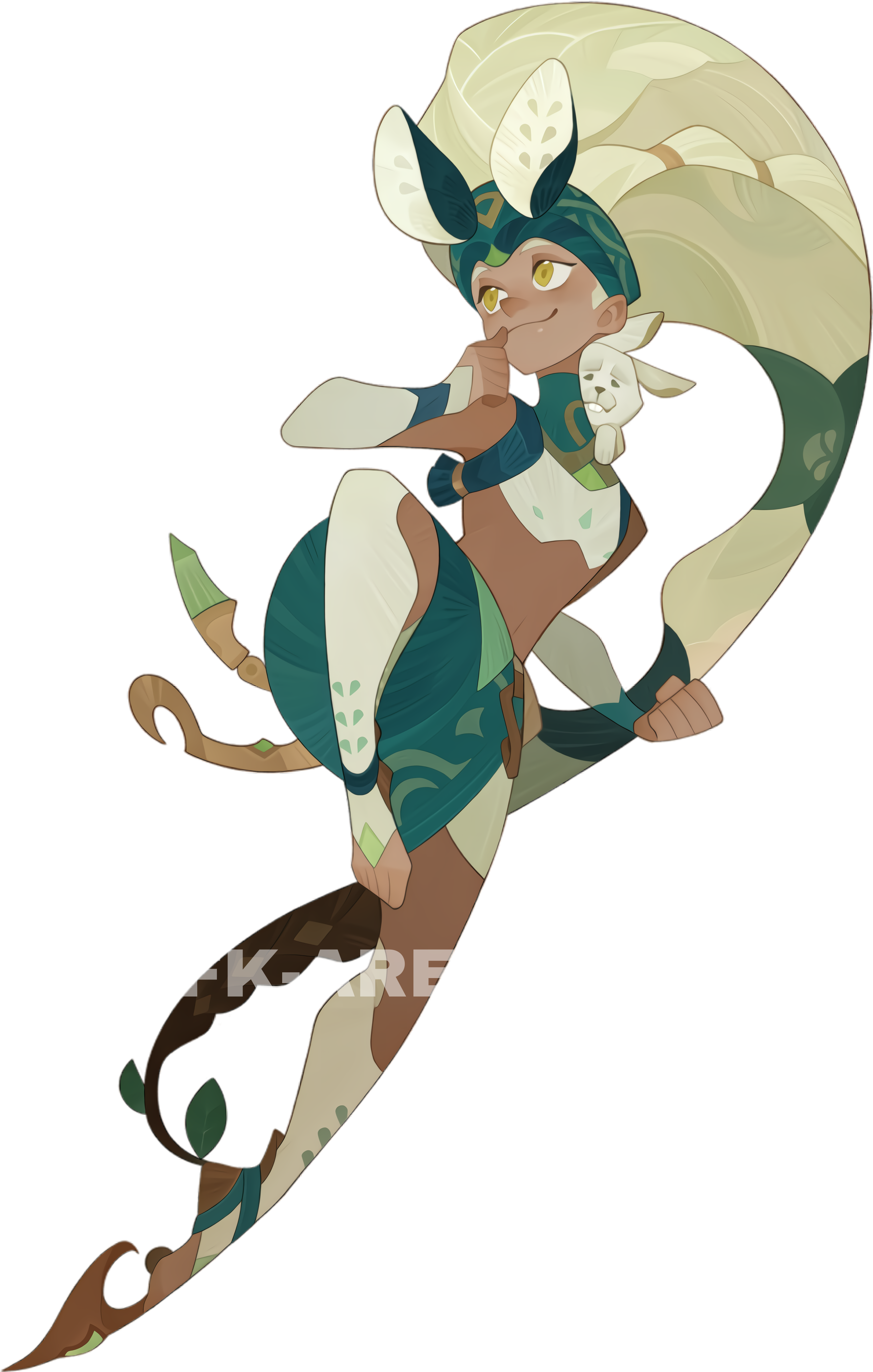 While his friends had often wondered why he didn't really resemble his parents, it wasn't until a group of the self-proclaimed Thorned Vengeance arrived at his house that Tamrus realized that something was wrong. It was the first time that his parents, always so loving and patiently responsive to his questions, actively avoided his querying eyes. They led the Thorned Vengeance into a room to talk quietly, the look in the latter's eyes as they swept past making Tamrus' skin crawl. It was not the first time these Thorned Vengeance had come to his village. They would look at him with the same loathing which plastered their faces as they ranted, spittle flying, about the evil committed by humans against the Wilders. Eventually, Tamrus was forced to face up to the fact that he was different from the others. He didn't have what other Wilders had: no tail, no claws. His large ears, of which he'd always been so proud, had even been made by his father. In fact, he appeared less like these forest companions and more like the humans the Thorned Vengeance railed against. He waited patiently until the Thorned Vengeance had left, then nervously asked his parents where he had really come from. Their reaction was not what he was expecting-they glanced at each other uneasily, but said not a word. A void seemed to open up inside him at their strange and unnatural expressions. Rubbing his large, drooping ears, he felt a stranger in his home for the first time in his life. Later, when his parents weren't looking, he snuck out of the house and wandered aimlessly in the forest. He stood atop a vast tree, wanting to gaze out over the vast arboreal sea as he usually did when troubled. But this time, his attention was immediately arrested by a whispered voice beneath him. "Get a move on, will you? We've still got another batch to hunt after this one's shipped off." Pushing aside the branches and leaves, Tamrus saw a group of humans, furtively hoisting dying animals onto their shoulders as they prepared to leave the Dark Forest. He followed the strangers, sneaking along the branches and trying to remain hidden amongst the leaves. Although his steps were light and nimble, the group seemed to notice slight movements and grew wary. "Watch yourselves now. We don't want those Thorned Vengeance finding us again." the human leader warned quietly. These must be the poachers the Thorned Vengeance always spoke about! He had to save the animals, but the poachers would get away if he went looking for help now. Tamrus frowned, thinking, then decided to stop them himself. He leapt nimbly from above, landing heavily right in the middle of the group. The shockwave generated by the impact disoriented those who managed to remain standing, as he yelled, "HEY! Who are you, and what do you think you're doing here?" "Uh... Isn't this a human kid?" One of the poachers suddenly exclaimed in surprise, looking closely at Tamrus. "What's a kid doing in the Dark Forest, dressed like that? And what's that on his head?!" "Hang on, you think this could be that baby Old Boozer threw into the forest?" Several of the poachers unconsciously dropped their guard at this, lowering their weapons and looking at each other before bursting into peals of laughter. "Hey, kid. Come here," the leader of the poachers coaxed, "I know some others around your age. They always have toys to play with and snacks to eat, and they don't run around the forest in rags like you. How about this-you tell us where the Wilders are, and we'll get you out of here, find your real parents. Whaddya say?" "That's right. Look at you, traipsing all over the forest like a savage, when the outside world is so much more exciting." another poacher agreed. "I'm not a savage!" Tamrus was furious, but quickly got his emotions under control and spoke again, as if suddenly thinking of something. "But I can take you. I know every inch of this place." "Just..." Tamrus squinted at them, "You'd better keep your word." He led them to a huge, dense thicket, saying that the Wilders he knew were behind it. "You wait here. I'll go get them to come out," Tamrus said, before disappearing into the middle of the thicket. Not long after a huge group of the Thorned Vengeance burst out in front of the expectant poachers, completely overpowering them before they could even react. Tamrus poked his head through the ring of Thorned Vengeance which surrounded them, smiling slyly, "I didn't lie to you! I told you I knew where the Wilders were!" While the leader of the Thorned Vengeance still had a sullen expression, he did look more gently upon Tamrus. Habitually taciturn, he merely nodded his appreciation at the child who had done them such a service. Tamrus suddenly felt a little embarrassed, but still raised his head high in response, his large ears shaking with pride. Right then, the fog which had been enveloping his mind was suddenly dispelled. Happily, Tamrus flew through the trees, his grappling hook whizzing through the air. He scampered homeward, bursting to tell his parents about his greatest ever achievement. But he didn't need to get that far because he bumped into his parents, anxiously out looking for him, while on the way. "My baby! We finally found you!" His mother hugged him close, plastering his face with kisses, guilt writ large on her own, "We just weren't ready to tell you before..." As his mother spoke, she reached out to wipe off some dirt from his face, her mind seeming to drift back in time. "It was many years ago... Your dad and I just found you, all alone in the forest, so-" "So you took me in!" Tamrus interrupted his mother, but the gentle eyes of her and his father gave him the courage to continue, "You watched me grow up. You are my only parents, and I will always be your son, and forever a child of the forest." ' "See my ears? My parents made them just for me!"